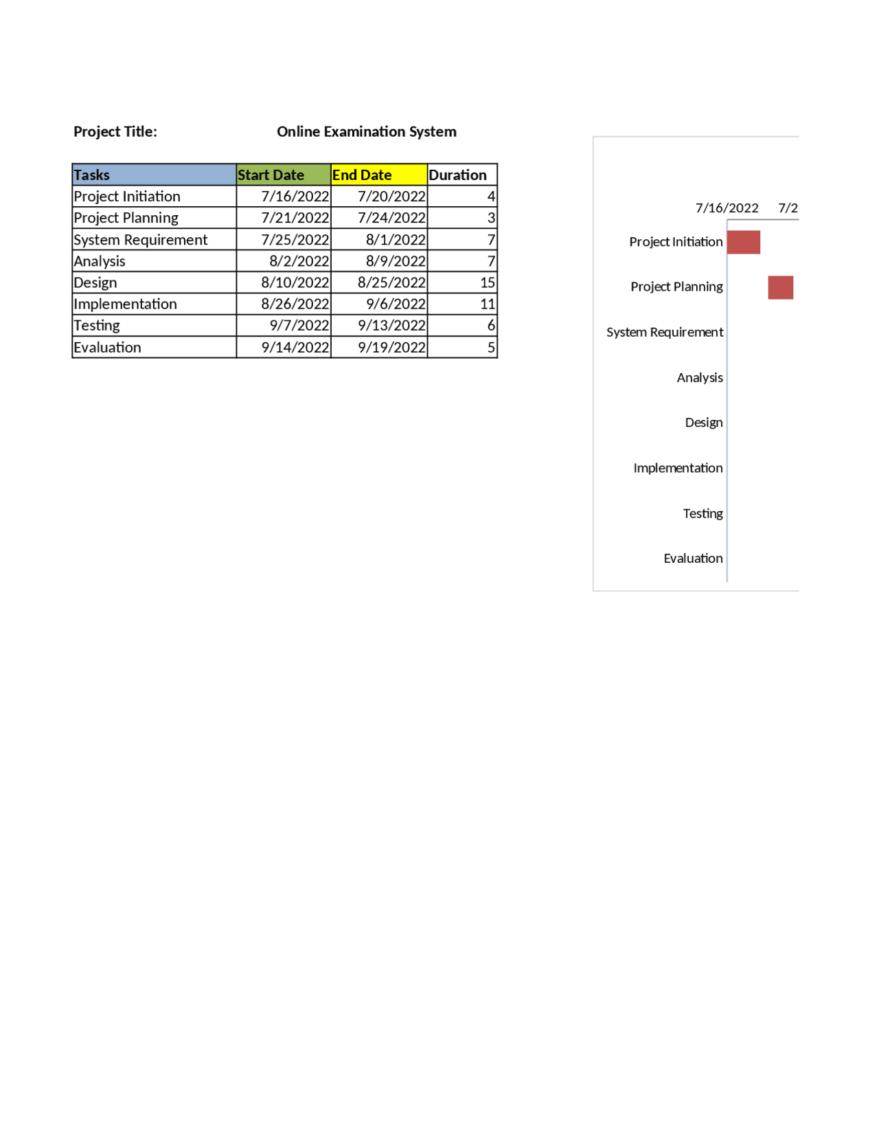 Gantt Chart For Online Examination System