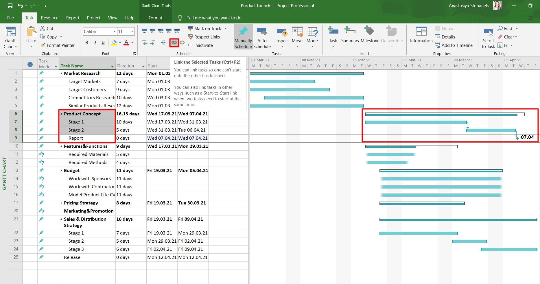 Gantt Chart Linking Tasks